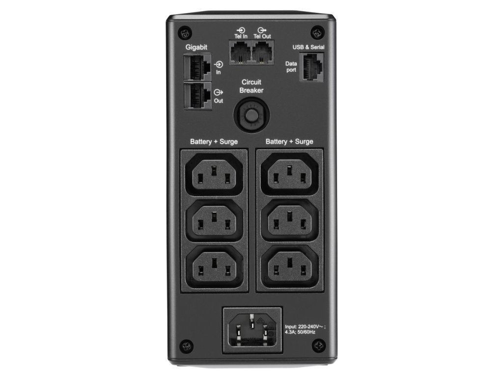 Záložní zdroj o výkonu 390 W s ochranou proti přepětí a line-interaktivní topologií. Disponuje šesti IEC 320 C13 konektory. Pro snadné ovládání je vybaven LCD displejem. Akustická varování pak upozorňují na změny stavu jednotky UPS či parametrů napájení. Samozřejmostí je ochrana datové linky nebo autotest baterie, který včas upozorní, kdy je třeba její výměny. Automatická regulace (AVR) pak eliminuje výkyvy napětí způsobující zhoršení audio a video signálu a namáhání napájecích komponent. Ke správě jednotky slouží USB port.