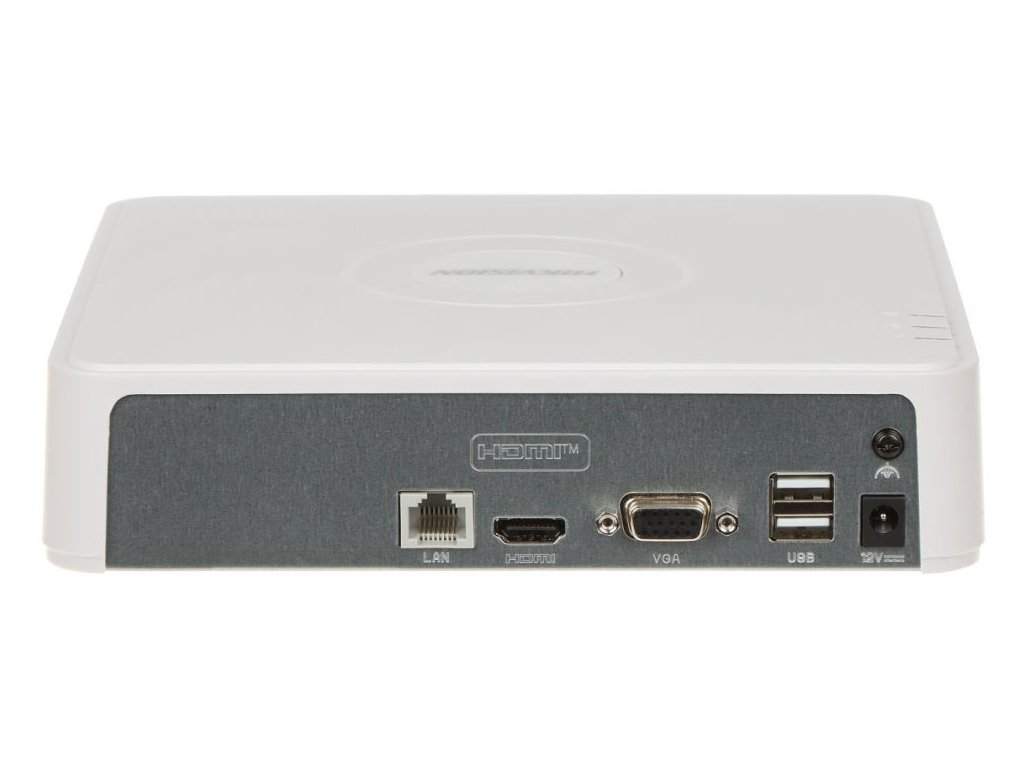 Záznamové zařízení pro 8 IP kamer. Povoleny kombinace různých rozlišení do 6 Mpx a datový tok do 60 Mb/s. Konfigurovatelné chytré funkce speciální kamery, jako je detekce překročení čáry nebo narušení. Zařízení podporuje také dekódování H.265+, díky kterému můžete ušetřit až 75 % datového objemu. K dispozici je jedna pozice pro SATA pevný disk s kapacitou až 6 TB. Aplikace Hik-Connect umožňuje snadnou správu sítě.