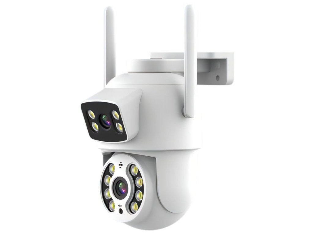 Chytrá venkovní bezpečnostní kamera s detekcí pohybu disponuje otočným mechanismem pro monitorování v zorném úhlu 360°. Dva snímače nabízí rozlišení 2× 2 Mpx a jsou schopné snímat video v rozlišení 1920 × 1080 bodů. Pro případ zhoršených světelných podmínek je přítomen IR přísvit do vzdálenosti až 10 m. Součástí kamery je integrovaný reproduktor a mikrofon, který umožní kvalitní oboustrannou komunikaci. Připojení lze jednoduše realizovat bezdrátově skrze Wi-Fi. Propojení kamery pomocí aplikace v mobilním zařízení umožní pohodlný vzdálený přístup, ovládání kamery, pořizování záznamů či fotografií. Natočené záznamy je možné ukládat i na microSD kartu do kapacity až 128 GB.