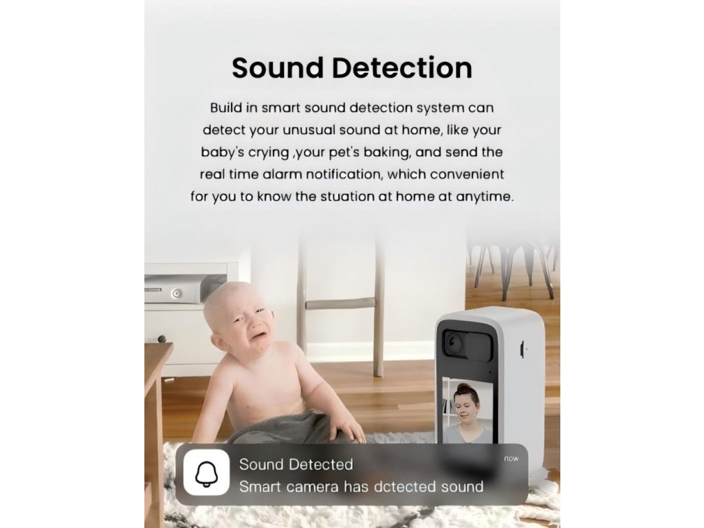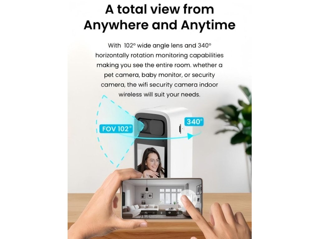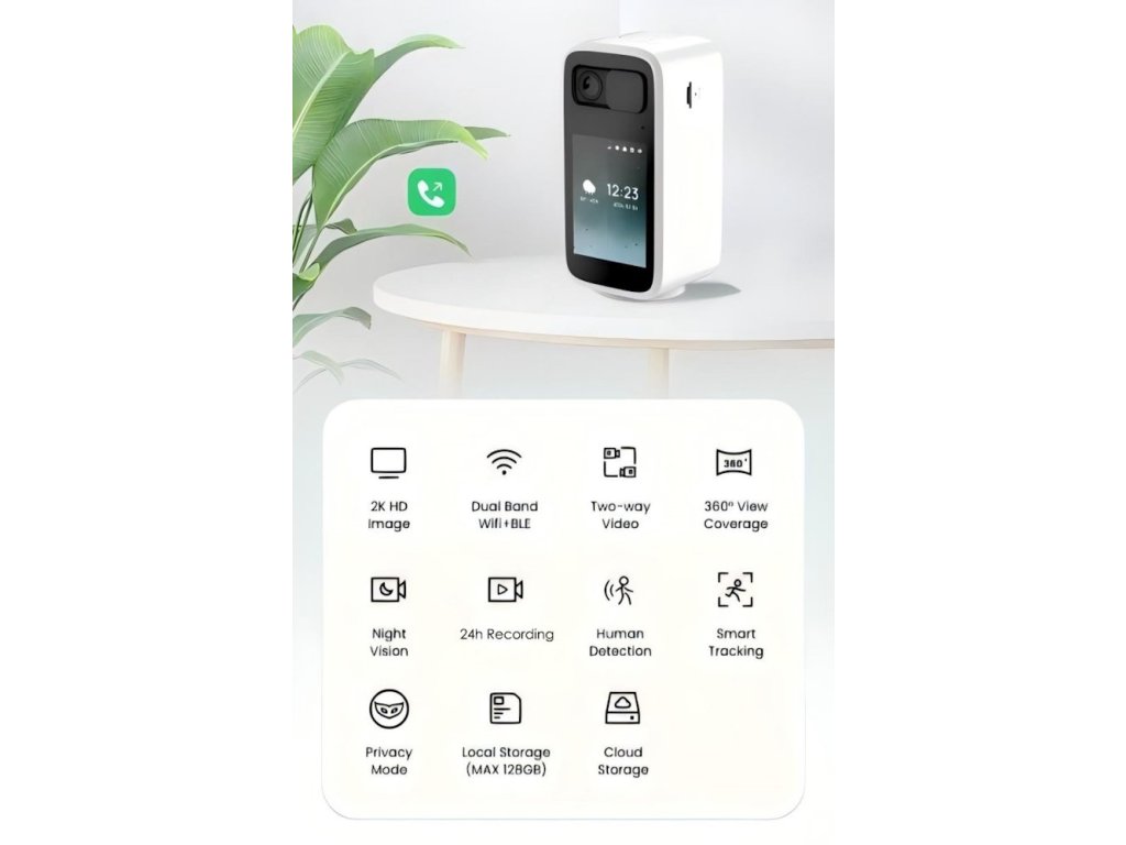 Moderní interiérová Wi-Fi kamera s 2,8" barevným displejem a pokročilou AI detekcí pro komplexní monitorování domácnosti.