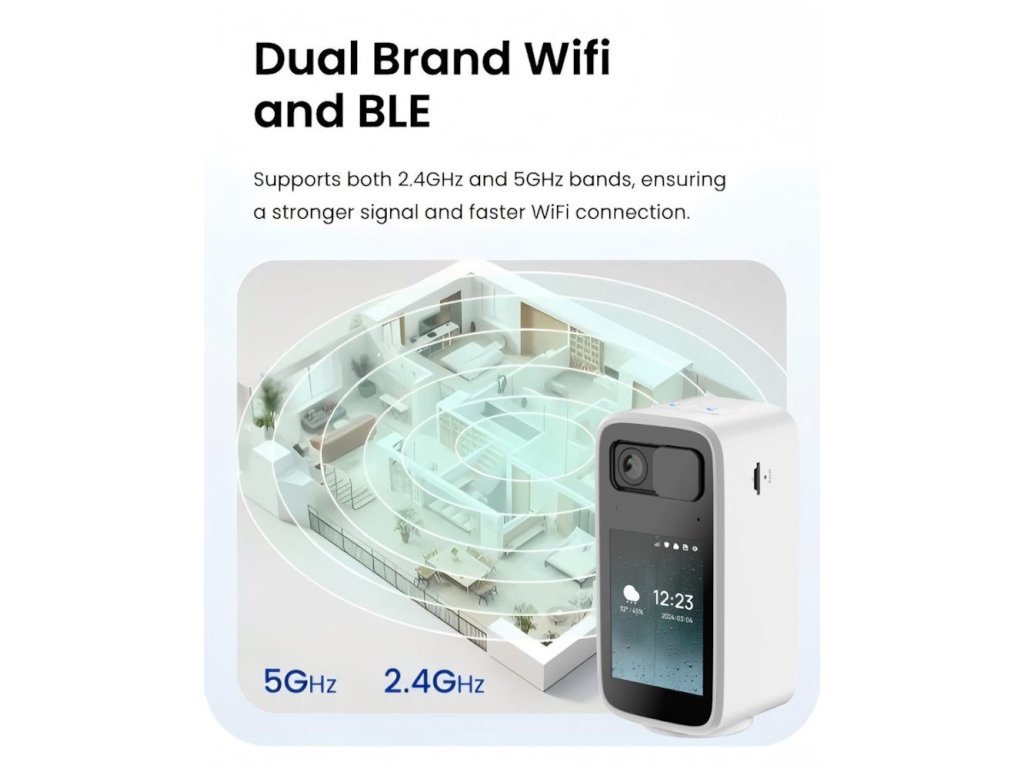 Kamera BLOCK nabízí duální Wi-Fi připojení na frekvencích 2,4 i 5 GHz pro stabilní přenos dat a sledování v reálném čase prostřednictvím aplikace Tuya Smart nebo Smart Life. Díky rozlišení 4 Mpx (2560 × 1440 px) a objektivu s zorným polem 102° zachytí každý detail v místnosti. Mechanismus otočení až o 355° (PAN) umožňuje pokrytí téměř celého prostoru bez slepých úhlů.