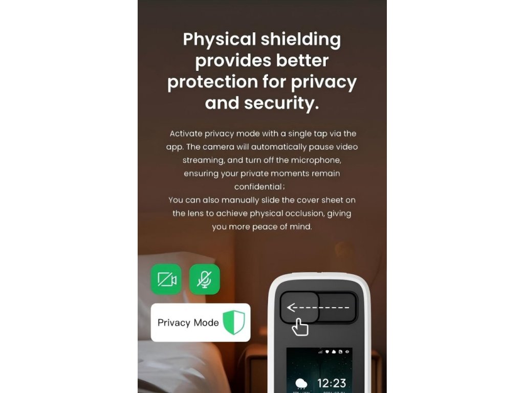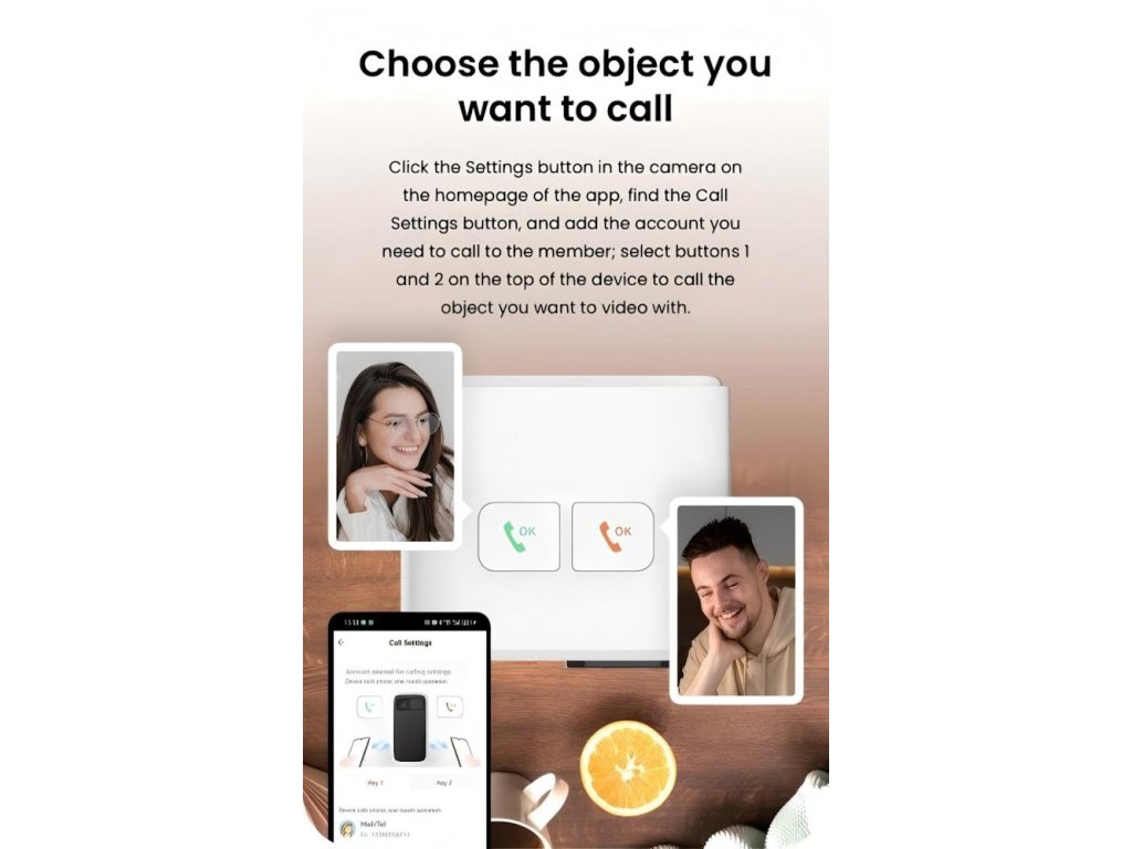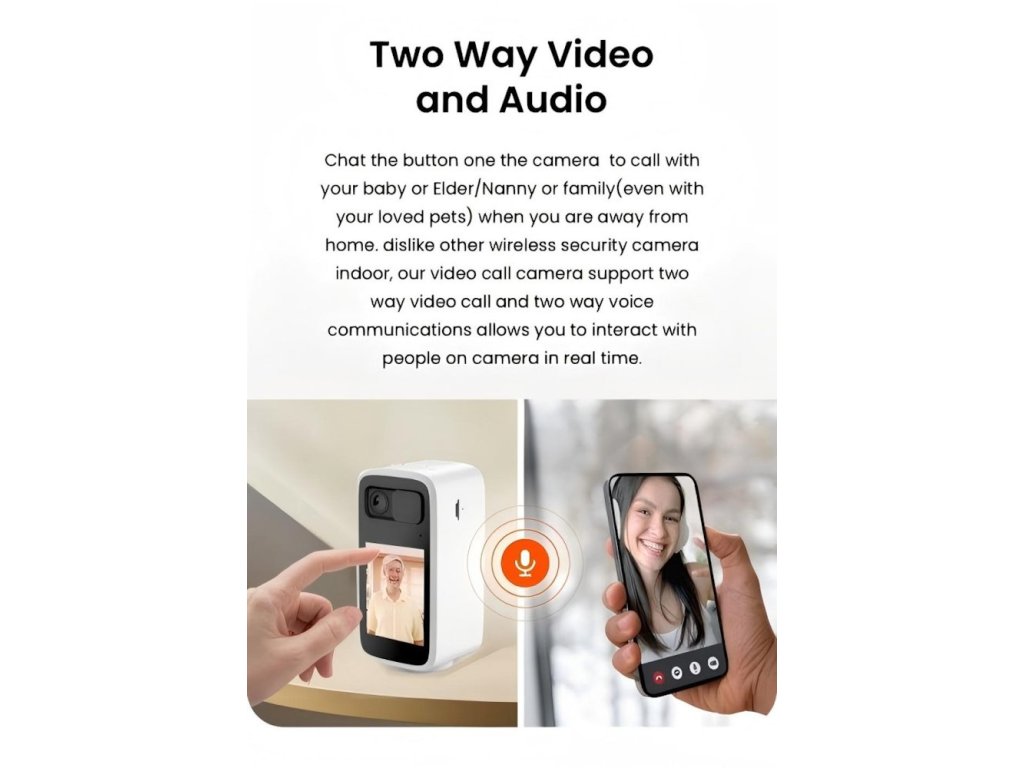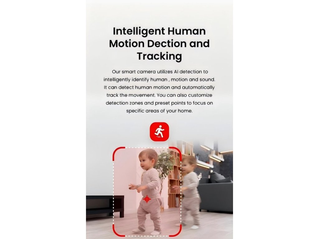 Pokročilá AI detekce rozpozná osoby, zvířata, vozidla i další objekty a okamžitě odešle push oznámení na váš telefon během 1–2 sekund. Kamera podporuje obousměrnou zvukovou komunikaci, takže můžete komunikovat s osobami v místnosti, a nabízí také funkci přímého volání z aplikace. Pro noční monitorování je vybavena IR přísvitem s dosahem až 5 m a automatickým přepínáním IR-CUT filtru.
