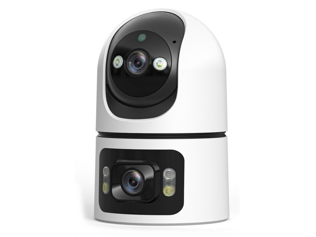 Inteligentní IP kamera DOUBLE nabízí špičkové zabezpečení interiéru díky duálnímu objektivu s rozlišením 4MP (1920 × 2160 px) a pokročilým funkcím umělé inteligence. Kamera se otáčí v rozsahu 355° horizontálně a 90° vertikálně, což zajišťuje kompletní pokrytí místnosti bez slepých míst.