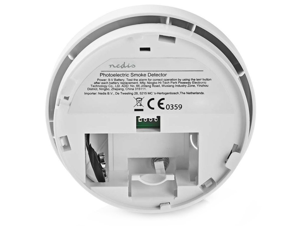 NEDIS detektor kouře/ EN 14604/ hlasitost 85 dB/ 1x 9V/6F22/ výdrž snímače 5 let/ bílý
