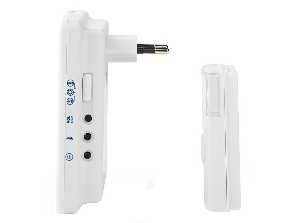 Bezdrátový zvonek s dosahem až 300 m při přímé viditelnosti. Po stisknutí tlačítka na zvonku se rozezní jedno ze 36 nastavitelných vyzvánění s hlasitostí až 80 dB. Napájení zvonku je realizováno ze sítě 230 V, napájení vysílače pak baterií typu CR2032.