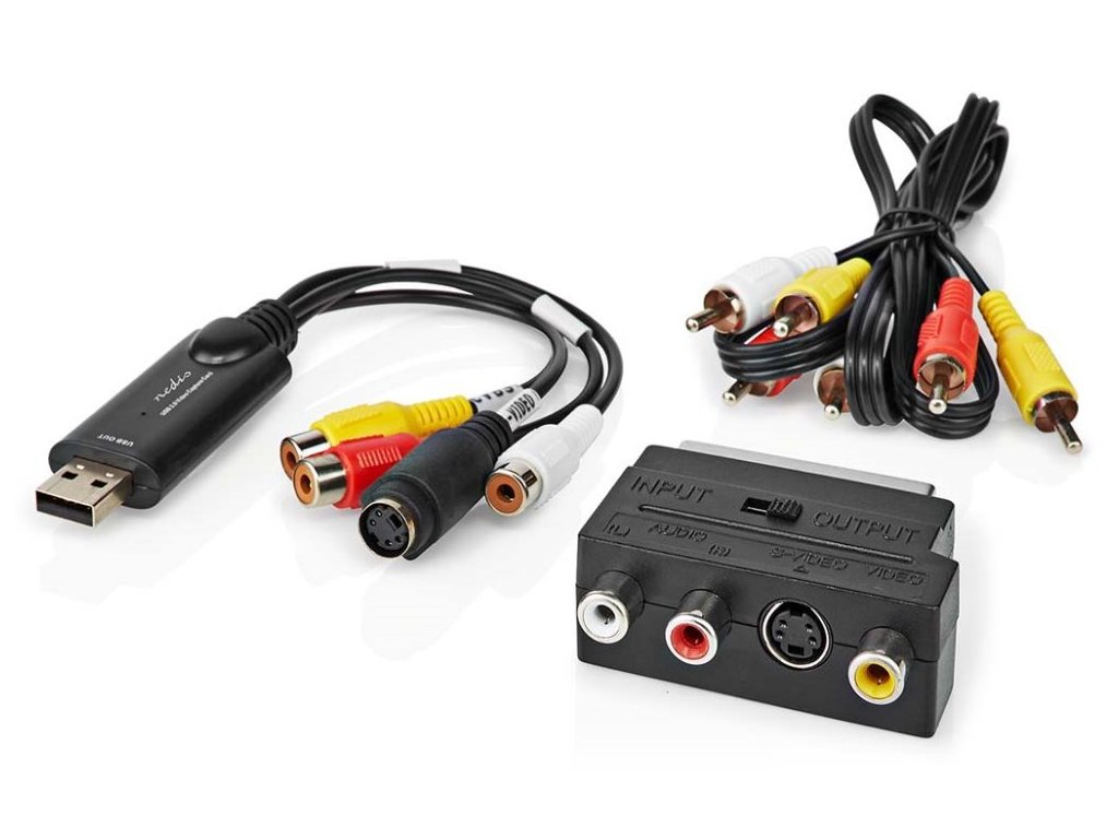 Kompletní sada příslušenství pro digitalizaci analogových videozáznamů. Jednoduše připojte videorekordér či videokameru pomocí kabelů v této sadě do USB portu počítače, bez nutnosti instalace jakýchkoli ovladačů. Přenášený obrazový a zvukový signál lze přijímat a zaznamenávat pomocí volně dostupného softwaru OBS Studio.