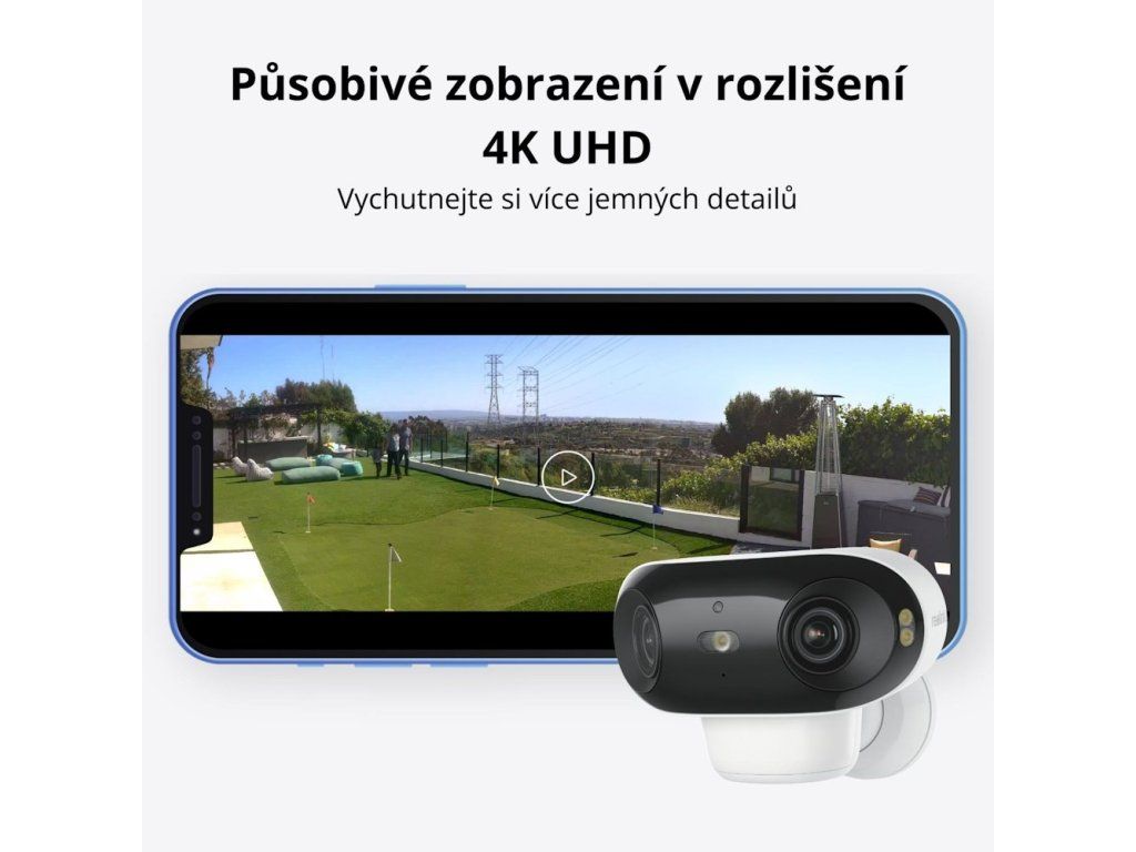 Samozřejmostí je podpora bezdrátového připojení pomocí Wi-Fi 6, které zajišťuje stabilitu a plynulý přenos obrazu. Předností je také bateriové napájení s dlouhou výdrží. Pro potřeby venkovní instalace kamera využívá odolné konstrukce se stupněm krytí IP66. Ve výbavě potěší také zabudovaný mikrofon a reproduktor pro obousměrnou komunikaci.