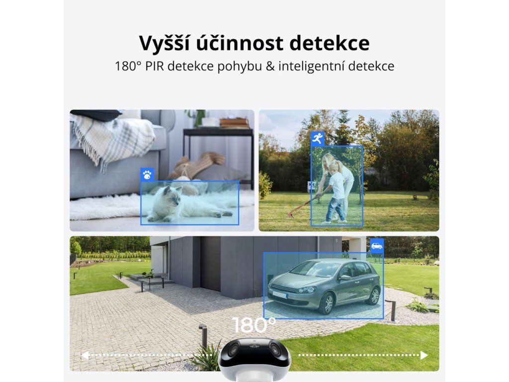 - Pokročilá AI detekce osob, vozidel a zvířat se 170° PIR senzorem dosahu až 10 metrů