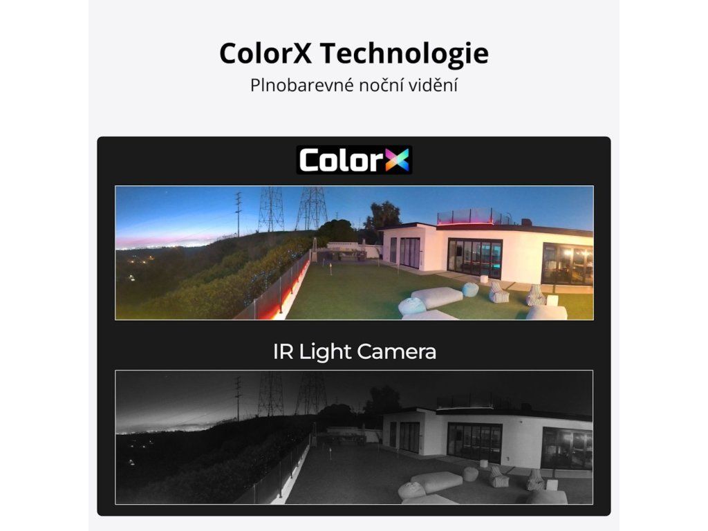 Kamera využívá inovativní ColorX technologii pro barevné noční vidění namísto tradičního infračerveného osvětlení, což přináší až 30% delší výdrž baterie a až 12 extra dní v pohotovostním režimu. Vybavena Wi-Fi 6 dual-band konektivitou pro bezproblémové streamování 4K obsahu s nižší latencí a vyšší stabilitou.