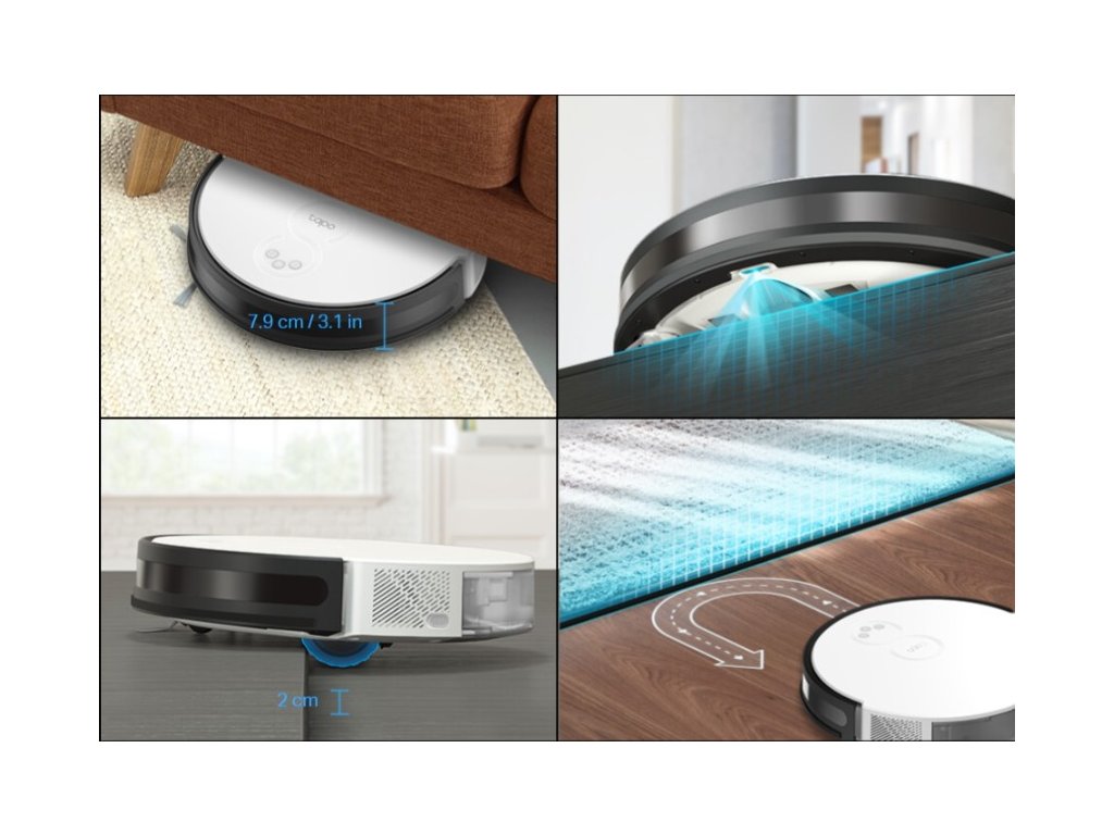 - Jednoduché používanie pomocou aplikácie Tapo Nastavte si plány upratovania a prepínajte medzi režimami upratovania a ste doma alebo na cestách.