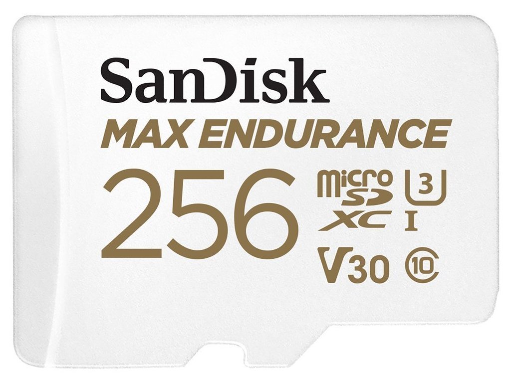 Pamäťová karta SanDisk MAX ENDURANCE zvládne aj tie najnáročnejšie podmienky v prevádzkovom aj vonkajšom prostredí. Odolá vode, teplotným výkyvom, nárazom alebo dokonca röntgenovému žiareniu. S kapacitou 256 GB dokáže uložiť až 120 000 hodín záznamov. Rýchlosť čítania a rýchlosť 100 MB/s zaručujú rýchle spracovanie a prenos údajov na efektívne zálohovanie.