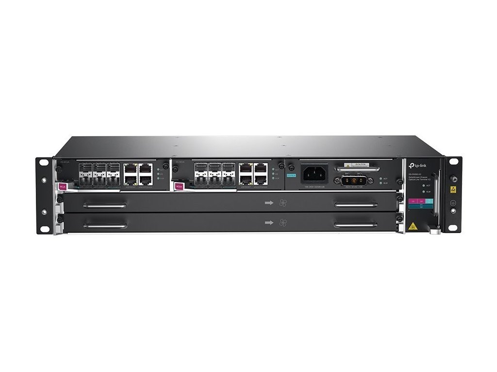 TP-Link DS-P8000-X2Terminál optickej linky OLT je centrálnou jednotkou na budovanie siete GPON. Obsahuje dve riadiace jednotky a dva sloty pre servisné dosky (napr. DS-LGPA-16 a DS-LGPA-08), ktoré môžu ponúkať 32 portov GPON alebo 32× kombinované porty XGS-PON a GPON. Podporuje pomer rozdelenia 1 : 128 pre sloty GPON a 1 : 256 pre sloty XGS-PON. Podporuje redundantné napájanie AC 100240 V a DC -38,457,6 V.