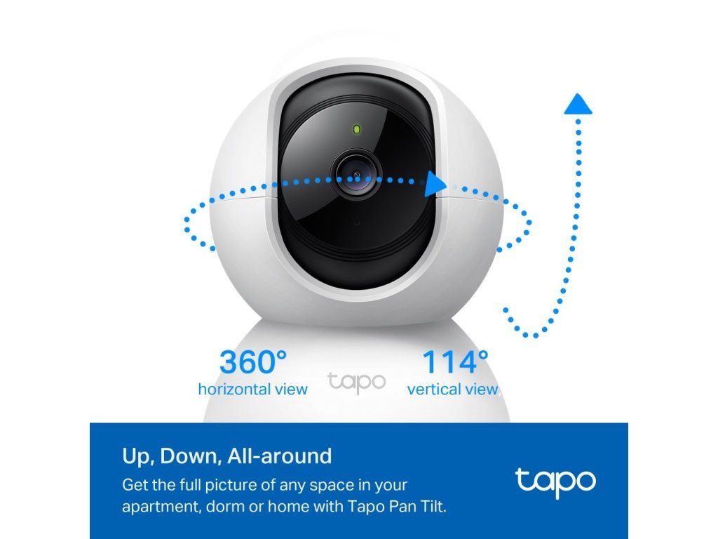 Tapo C200 je moderní domácí bezpečnostní kamera s možností otáčení 360° horizontálně a nakláněním 114° vertikálně, která poskytuje kompletní pokrytí sledovaného prostoru. Kamera nabízí Full HD 1080p rozlišení s progresivním CMOS senzorem pro ostré a detailní záběry ve dne i v noci.