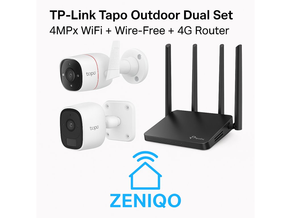 TP-LINK TAPO OUTDOOR DUAL SET – 4MPx WiFi + Wire-Free + 4G Router