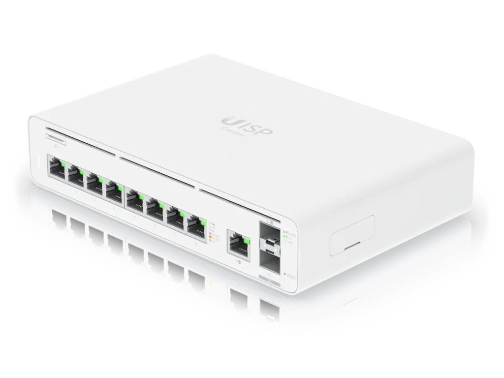 Konzola Ubiquiti UISPKonzola UISP (smerovač + prepínač ) slúži ako prepínač (9x GbE RJ-45, 2x 10GbE SFP+ slot) a zároveň ako výkonná ethernetová brána. Je to produkt určený výhradne pre poskytovateľov internetových služieb alebo správcov sietí.