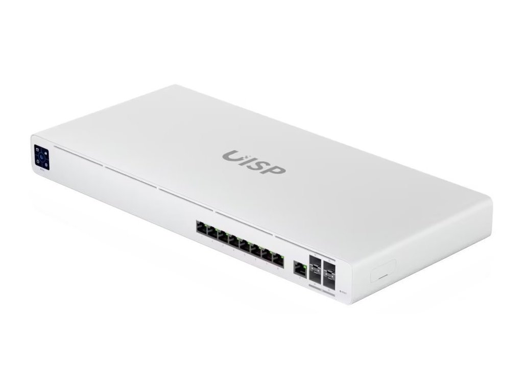 Smerovač Ubiquiti UISP ProUISP Router Pro (9× GbE RJ-45 port, 4× 10GbE SFP+ slot). Môže slúžiť aj ako prepínač na 2. vrstve. Smerovač má 1,3"dotykový displej, ktorý poskytuje informácie o stave a zaťažení smerovača.
