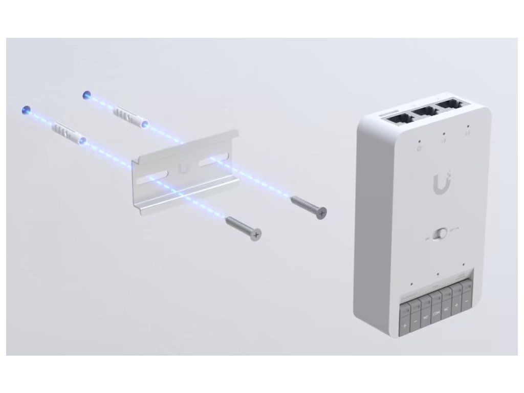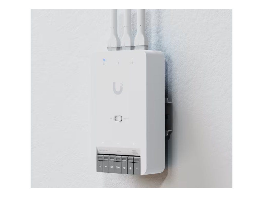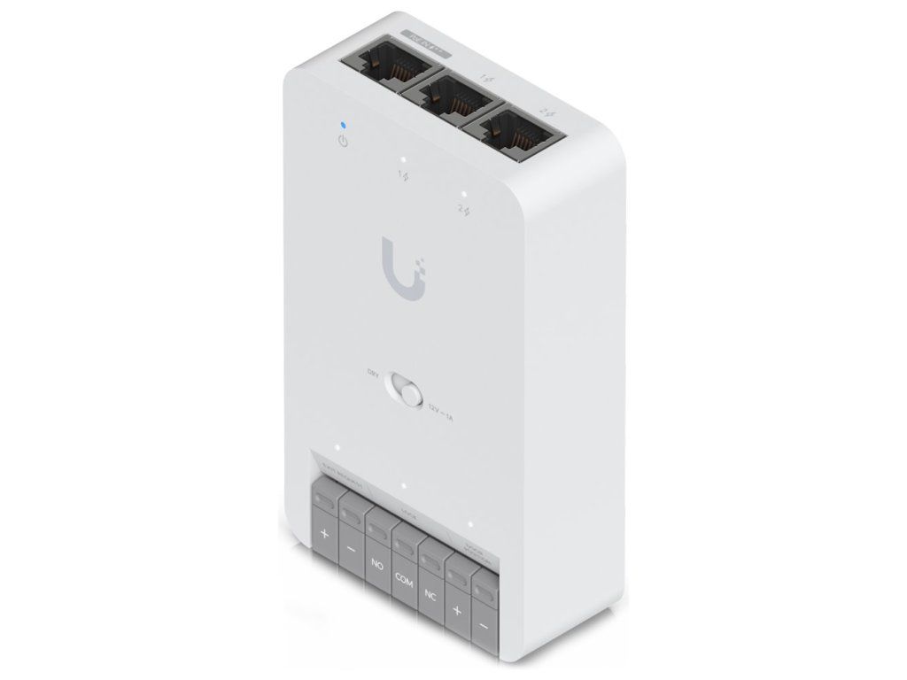 Ubiquiti UniFi Access Door Hub Mini; Kompaktní rozbočovač řízení přístupu pro jedny dveře. Umožňuje připojení až dvou přístupových čteček UniFi nebo kamer Protect Camera. 3× GbE RJ-45; 1× zámková svorka (přepínatelná na 12 V/ 30 V); 2× vstup (pro senz...
