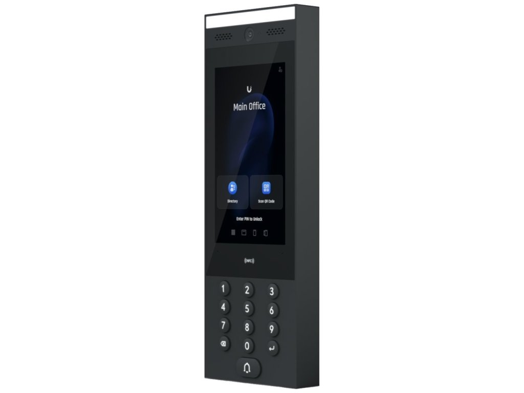 Interkom Ubiquiti UniFi AccessElegantný IP dverový interkom so 7" dotykovým displejom (1600 × 1200 pixelov), podsvietenou klávesnicou a čítačkou kariet/čipov s technológiou Mifare (13,56 MHz). K ďalšiemu vybaveniu patrí HD kamera. Zariadenie je vhodné aj na vonkajšie použitie vďaka krytiu IP65. Ďalej tiež senzor priblíženia a ALS.