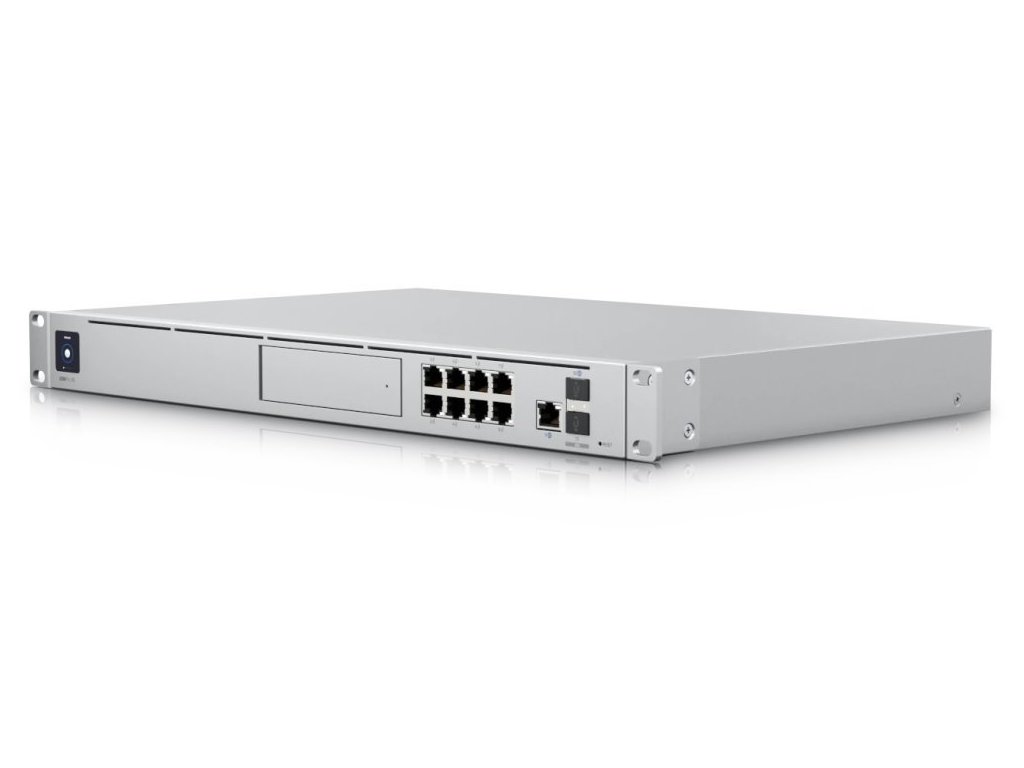 - Integrovaná bezpečnostná brána a NVR pripravené pre UniFi Protect, ktoré podporujú kompatibilné 3,5" pevné disky