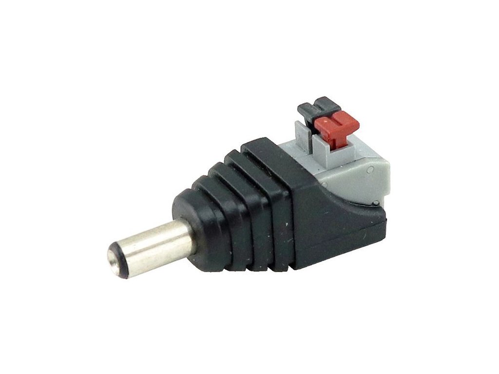 Redukce z 2pólové pružinové svorkovnice na napájecí jack 5,5 × 2,1 mm.
